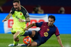 体育资讯4月23日讯 在巴萨主场1-0战胜马洛卡的比赛中,尽管埃里克-加西亚被弗里克第一次安排在右后卫位置上,但他依然拿出了亮眼的表现。